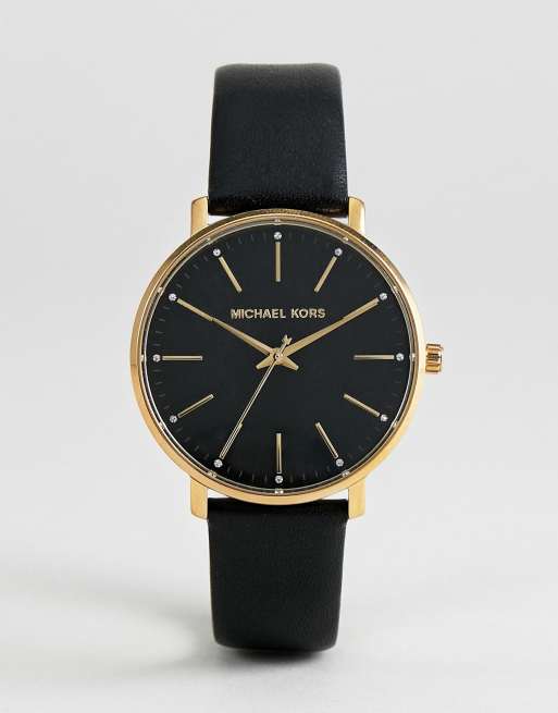 Michael Kors Women s Pyper Three Hand Black Leather Watch MK2747