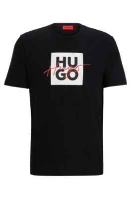 HUGO Cotton jersey T shirt with double logo