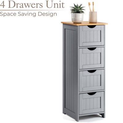 Christow Grey Bathroom Drawer Unit Floor Storage Cabinet With Bamboo Top 82cm