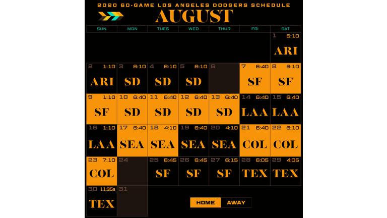 Los Angeles Dodgers 2020 Regular Season Schedule
